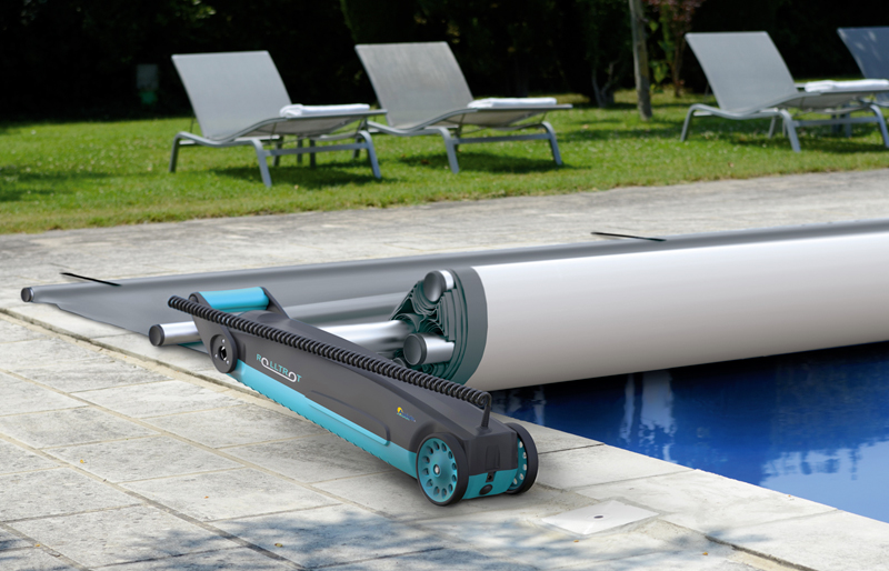 ROLLTROT2® è un avvolgitore motorizzato studiato per minimizzare gli ingombri e gli sforzi nell'avvolgimento delle coperture di sicurezza a barre per piscina.