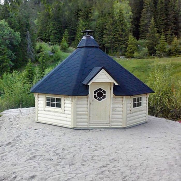 Di ampia metratura interna con i suoi 14,9 mq, GAIA è realizzata in pannelli di legno spessi 45 mm ed è dotata di ogni comfort: elegante porta a battente singolo, finestre con doppi vetri, panche sulle pareti interne, tetto rivestito con tegole bituminose. Fiore all'occhiello della casetta GAIA è la possibilità di installare un'isola barbecue centrale, scegliendo tra uno dei 3 allestimenti di barbecue proposti.