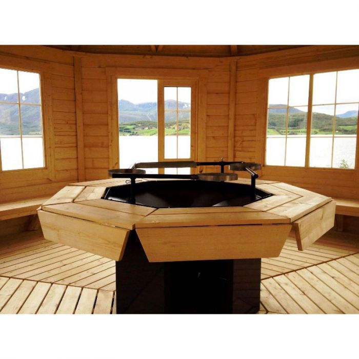 Barbecue con piano cottura e tavolo attorno alla griglia