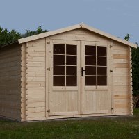 La tipologia costruttiva blockhouse conferisce a questa casetta da giardino un'ottima stabilità e resistenza nel tempo, mentre le due finestre frontali garantiscono una buona illuminazione interna.