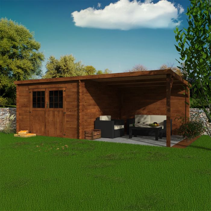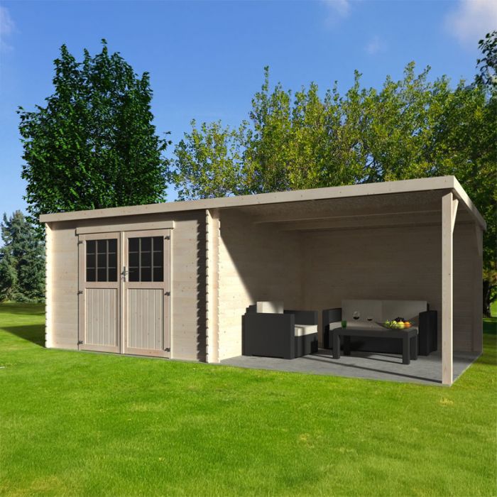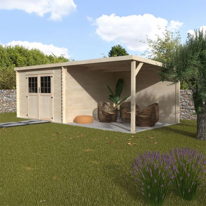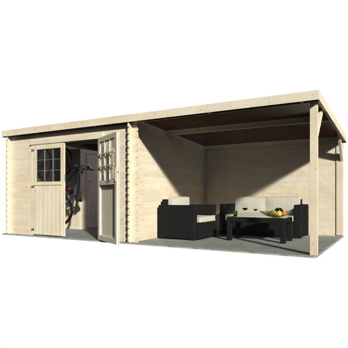 Uno degli elementi più distintivi della casetta Liv è il portico laterale, che offre un ampio spazio coperto aggiuntivo. Quest'area è perfetta per riporre legna, biciclette o per creare una zona relax all'aperto, protetta e versatile.