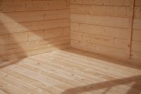 (*) Il sistema di assemblaggio definito "blockhouse" si riferisce all'impiego di assi in legno massiccio con lavorazione maschio-femmina, in modo da avere tavole con incastro e sovrapposizione perfetti, senza necessità di utilizzare collanti o piastre di ancoraggio durante l'installazione.