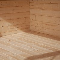 (*) Il sistema di assemblaggio definito "blockhouse" si riferisce all'impiego di assi in legno massiccio con lavorazione maschio-femmina, in modo da avere tavole con incastro e sovrapposizione perfetti, senza necessità di utilizzare collanti o piastre di ancoraggio durante l'installazione.