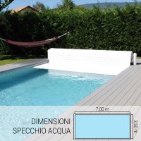NOTA BENE: il rullo con la copertura deve essere posizionato sul lato della piscina con la larghezza maggiore perchè la tapparella deve entrare direttamente in acqua e non toccare il bordo piscina.