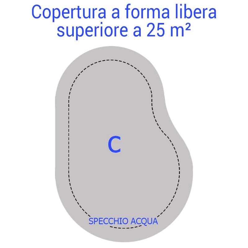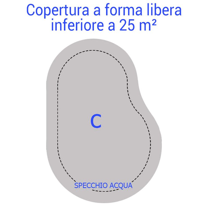 Nel caso di piscina a forma irregolare, occorre considerare le misure massime del rettangolo in cui può essere iscritta la forma della piscina.