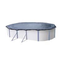 Copertura di protezione di 90 gr/m² per piscine di forma ovale, ideale per preservare l'acqua dallo sporco e dalle foglie, proteggendo così anche il bordo della struttura.