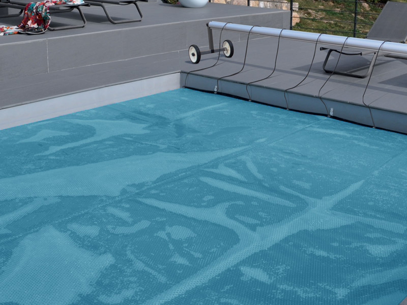 Realizzata su misura si adatta perfettamente alla vostra vasca, la copertura solare galleggia sull'acqua e presenta 2 lati distinti: