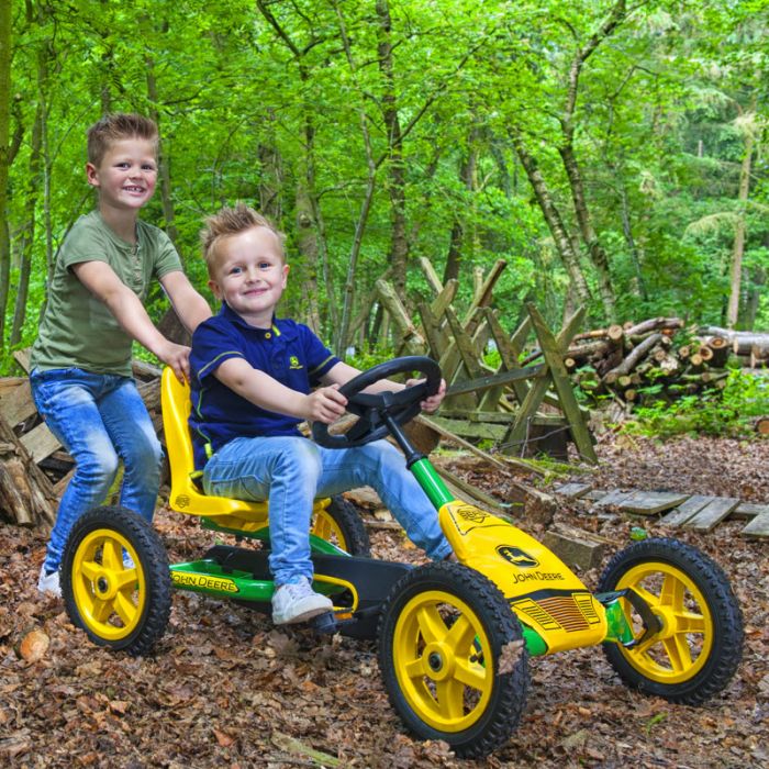 Il Go-Kart a pedali BUDDY JOHN DEERE permetterà ai bambini di sfrecciare in libertà in giardino, nei prati, in campagna e ovunque ci siano spazi e voglia di divertirsi.