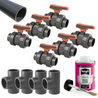 Tramite le valvole a sfera è possibile regolare la portata dell'acqua, ma soprattutto bloccarne il passaggio nella macchina in questione ed escluderla così dal circuito idraulico della piscina per poter effettuare un intervento di manutenzione o di riparazione.