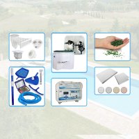 Prodotti chimici per il trattamento e la manutenzione dell'acqua della piscina, disponibili anche in kit apertura, manutenzione e chiusura