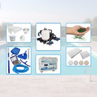 Prodotti chimici per il trattamento e la manutenzione dell'acqua della piscina, disponibili anche in kit apertura, manutenzione e chiusura