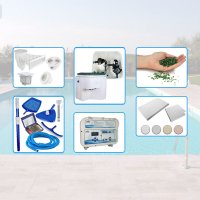 Prodotti chimici per il trattamento e la manutenzione dell'acqua della piscina, disponibili anche in kit apertura, manutenzione e chiusura