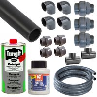 Kit di collegamento con tubi da Ø 50 mm per piscine da interrare con 1 skimmer e 1 bocchetta - 50 metri
