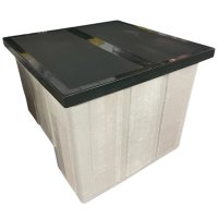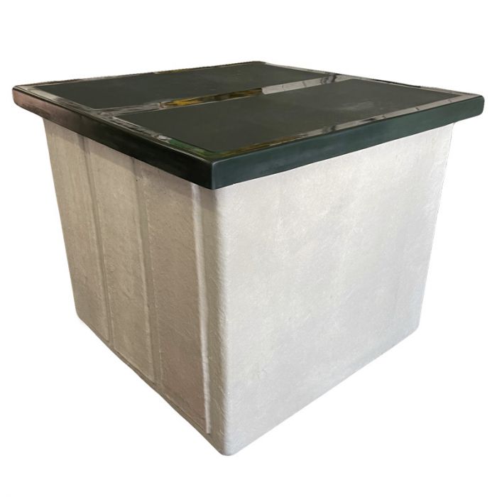 Realizzato in vetroresina, un materiale altamente resistente, ideale per questo tipo di utilizzo e dotato di coperchio con superficie antiscivolo calpestabile.