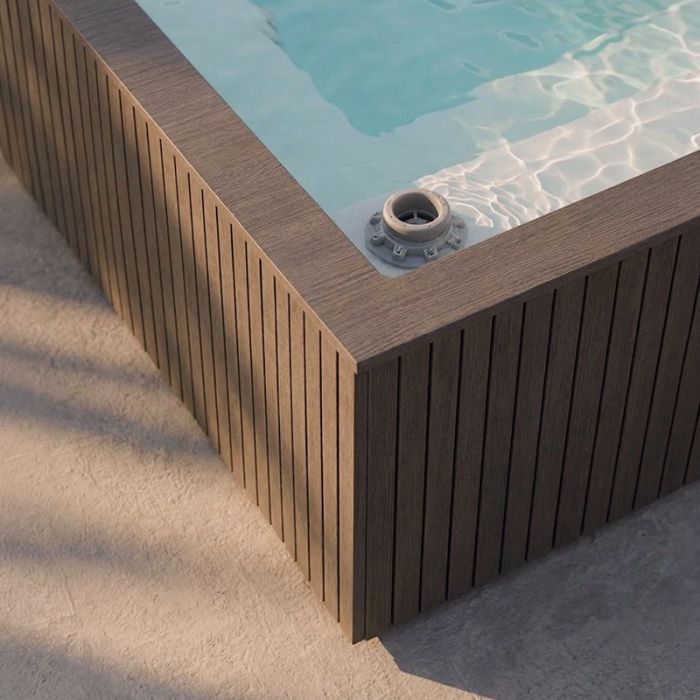 La minipiscina idromassaggio INCANTO SPA vanta un rivestimento in legno composito WPC che dona alla struttura l'eleganza naturale del legno, garantendo al contempo una resistenza totale alle intemperie senza alcuna necessità di trattamenti periodici. L'impatto visivo si completa con la cromoterapia RGB, offrendo la possibilità di godersi il relax immersi in scenari luminosi personalizzati.