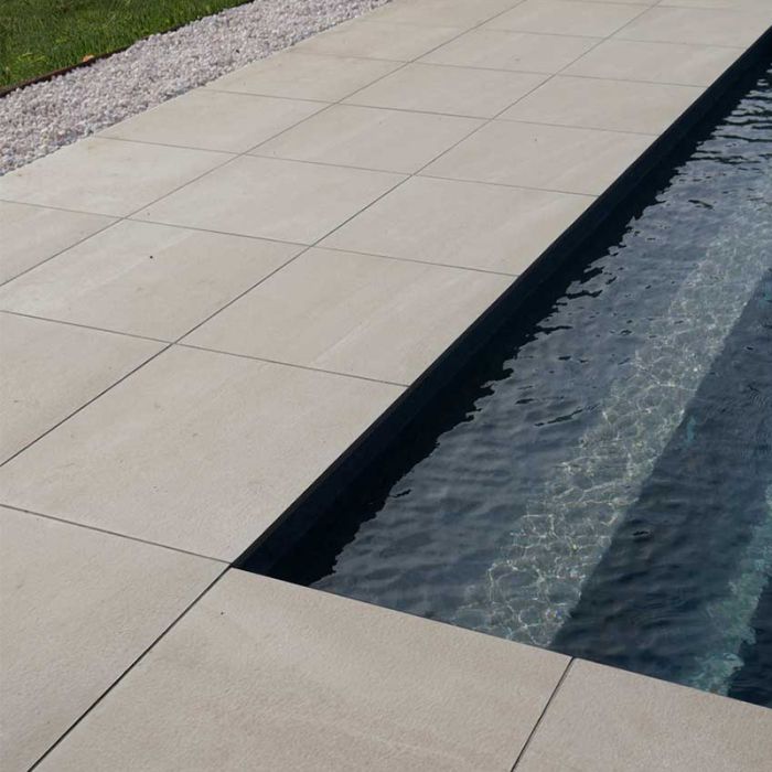 L'impiego del formato quadrato 60x60 cm rettificato dona un tocco di modernità e respiro visivo alle aree outdoor, creando un ambiente ordinato e armonioso.