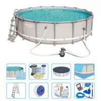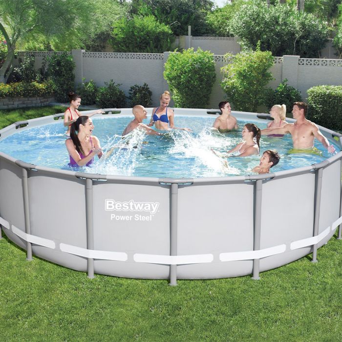 La piscina fuori terra POWER STEEL di Bestway® è rotonda e ha un diametro di ben 4,88 m. È una piscina di grande dimensioni adatta ad accompagnare pomeriggi di divertimento con la famiglia e gli amici.
