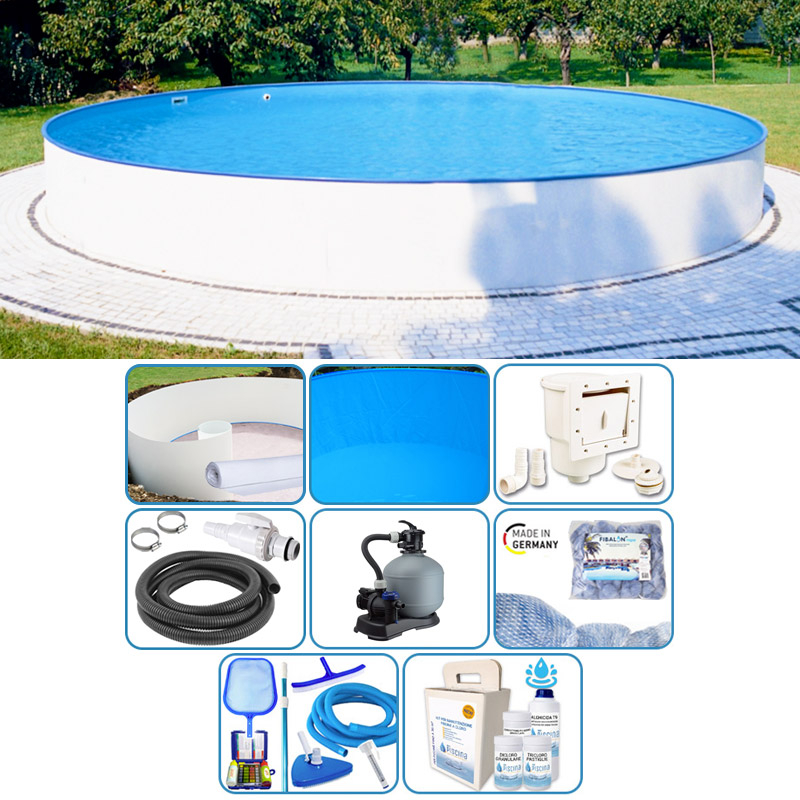 Da installare seminterrata almeno per 50 cm, questa piscina è venduta in kit d'installazione: riceverai tutto il necessario, ed anche di più, a seconda del kit scelto.