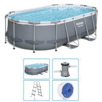 La piscina ovale fuori terra POWER STEEL di Bestway® da 4,27 x 2,50 x h 1,00 m è perfetta per passare piacevoli giornate estive all'aria aperta con la famiglia o in compagnia.