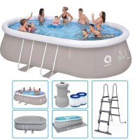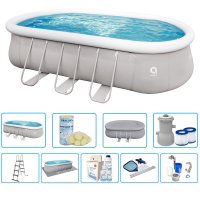 Questa piscina è disponibile in due Kit: Base che include il materiale necessario al corretto funzionamento, mentre all'interno del kit Pro potrai trovare un pratico kit manutenzione chimici, un kit di pulizia e un sacchetto di materiale filtrante FIBALON Compact Giallo.