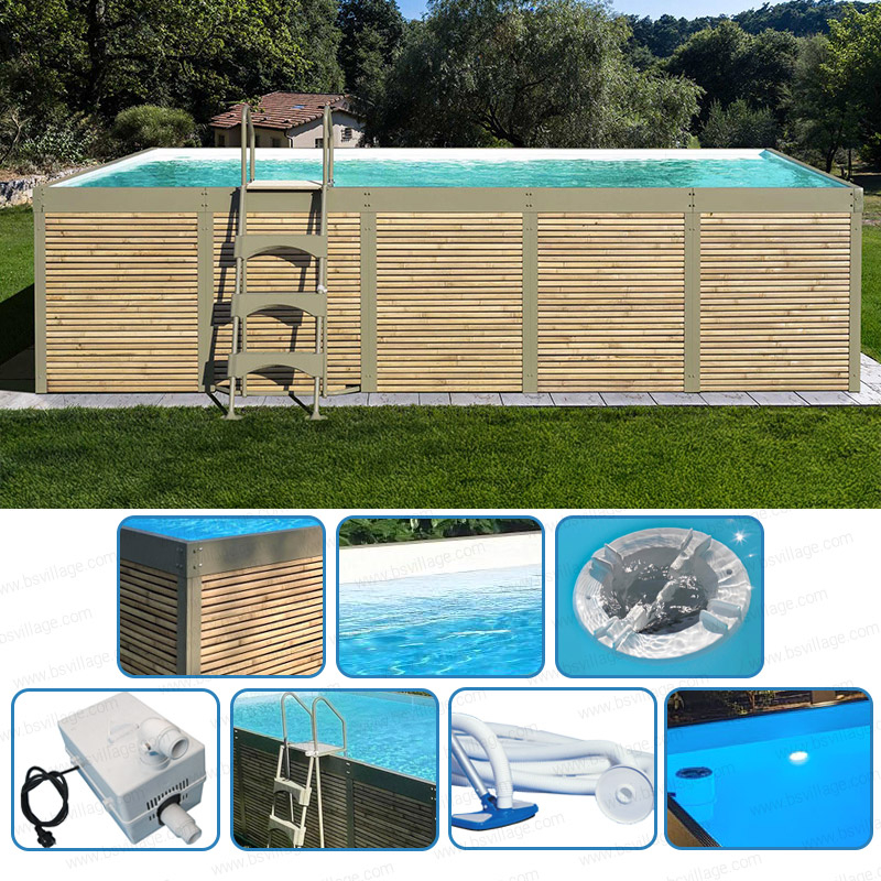 La struttura della piscina ANTEA è realizzata in acciaio zincato, il rivestimento esterno è in pannelli di bambù a listelli, il telo interno è una membrana altamente resistente alla trazione e trattata anti-UV: potremo godere della nostra piscina per tanti anni, utilizzandola in completa sicurezza.