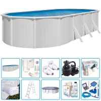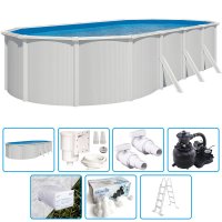 Kit piscina completo: la piscina viene fornita con tutto il necessario per essere subito installata e pronta all'uso (scala esterna, skimmer, bocchetta, tubazioni, valvole di chiusura e tappeto di fondo).