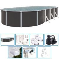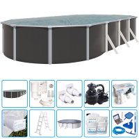 Piscina STEELDESIGN con struttura in acciaio zincato a caldo. La raffinatezza del color antracite e l'eccezionale robustezza del metallo si combinano per creare una piscina adatta a qualsiasi tipologia di giardino.