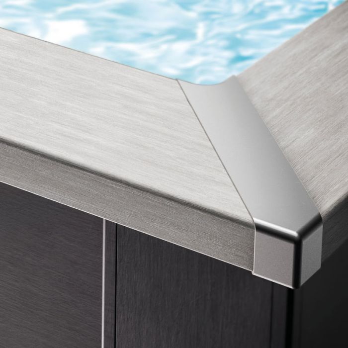 Il liner in PVC, spessore 60/100, è anch'esso grigio, per creare una continuità con il bordo.