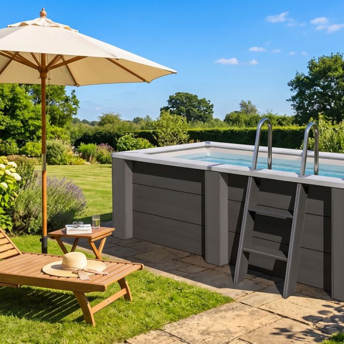 La piscina in legno composito WPC WOOD CONNECT rettangolare 3,15 x 1,75 metri è perfetta per le famiglie con bambini piccoli e per chi vuole ritagliarsi un'oasi di relax in un giardino di piccole dimensioni.