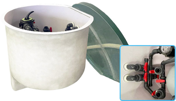 Locale tecnico in vetroresina completo di coperchio con superficie antiscivolo.