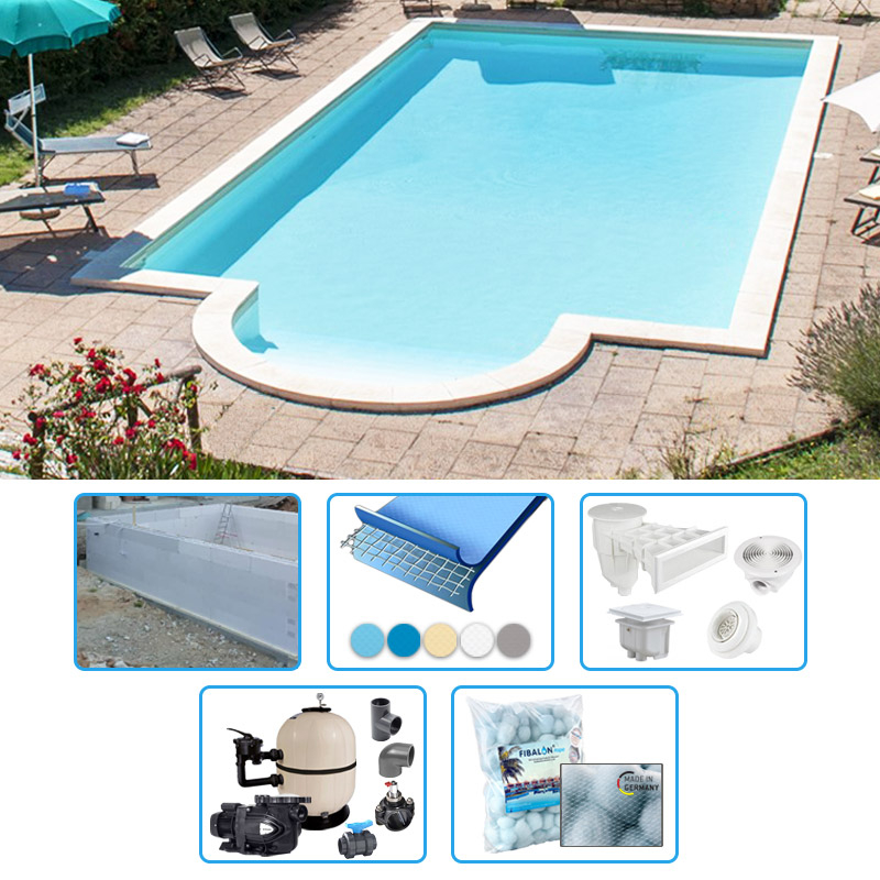 BSVillage ti propone kit d'installazione composti da struttura in casseri di polistirolo ad incastro e dai componenti necessari all'installazione e all'utilizzo: i kit che proponiamo sono una base da cui partire, poi ti seguiremo passo passo nella configurazione della piscina dei tuoi sogni. Puoi scegliere, ad esempio, di avere il nuoto controcorrente per allenarti oppure l'idromassaggio per rilassarti dopo una giornata di lavoro, o ancora l'illuminazione LED oppure degli scenografici gradini di ingresso in acqua, ecc.