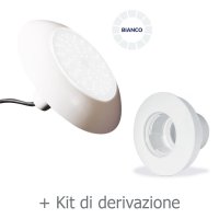 #5 / Kit illuminazione a LUCE LED BIANCA composto da: n. 1 faro LED per bocchetta piscina Ø 297 mm a luce bianca da 1890 Lumen - 18 W per rivestimenti interni in liner PVC, n. 1 bocchetta per piscina senza sfera orientabile, kit di derivazione faro. Trasformatore non incluso.