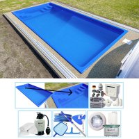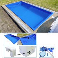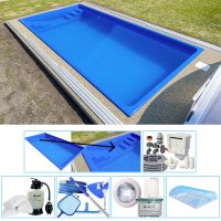 Questa piscina è realizzata in vetroresina stratificata, lo strato colorato è resistente ai raggi UV e cloro.