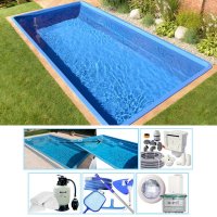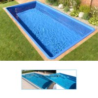 Questa piscina è realizzata in vetroresina stratificata, lo strato colorato è resistente ai raggi UV e cloro.