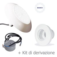 #3 / Kit illuminazione a LUCE LED BIANCA composto da: n.1 faro LED per bocchetta piscina Ø 297 mm a luce bianca da 1890 Lumen - 18 W per rivestimenti interni in liner PVC, n.1 bocchetta per piscina senza sfera orientabile, kit di derivazione faro. Trasformatore non incluso.
