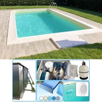 - Kit PRO: per chi è alla ricerca di un kit più completo, dotato di alcuni tra gli accessori maggiormente richiesti come il kit di pulizia, i bordi in pietra ricostruita e la centralina di controllo cloro e pH.