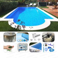 Prodotti chimici per il trattamento e la manutenzione dell'acqua della piscina, disponibili anche in kit apertura, manutenzione e chiusura