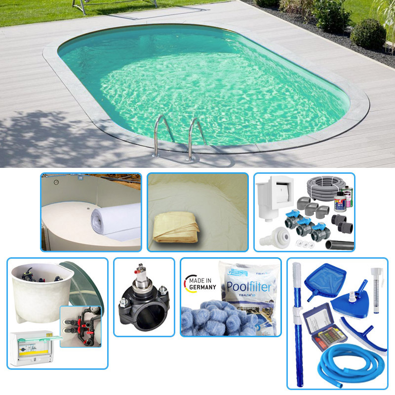- retino, spazzolone, scopa triangolare, termometro, tubo galleggiante Ø 38 mm, asta telescopica in alluminio, pool tester.