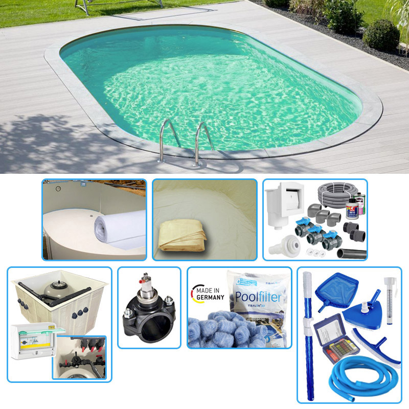 - retino, spazzolone, scopa triangolare, termometro, tubo galleggiante Ø 38 mm, asta telescopica in alluminio, pool tester.