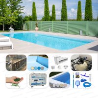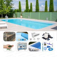 Prodotti chimici per il trattamento e la manutenzione dell'acqua della piscina, disponibili anche in kit apertura, manutenzione e chiusura