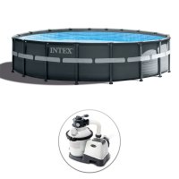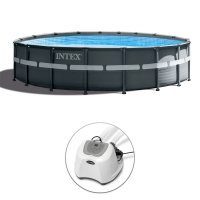La piscina Ultra XTR Frame di Intex ha forma rotonda, è facile da montare e ideale per il giardino, installabile in fai da te senza necessità di operare murarie.
