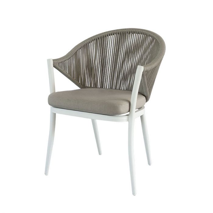 Lo schienale è in corda intrecciata, mentre la seduta è provvista di morbido cuscino.