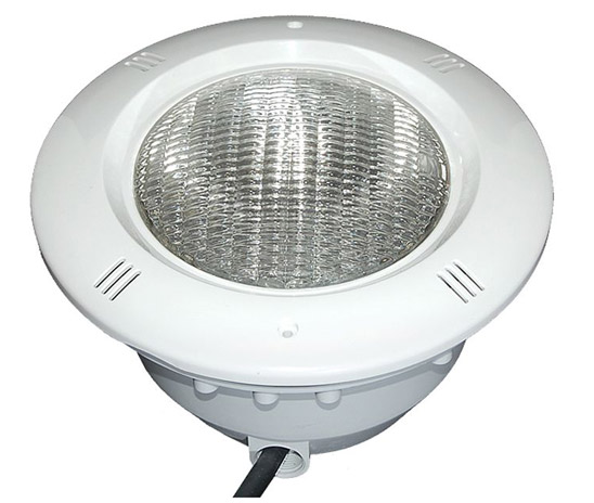 Pensato per l'installazione in piscine interrate e fornito completo di cassa di alloggiamento, corpo lampada, flangia, guarnizioni e viti inox.