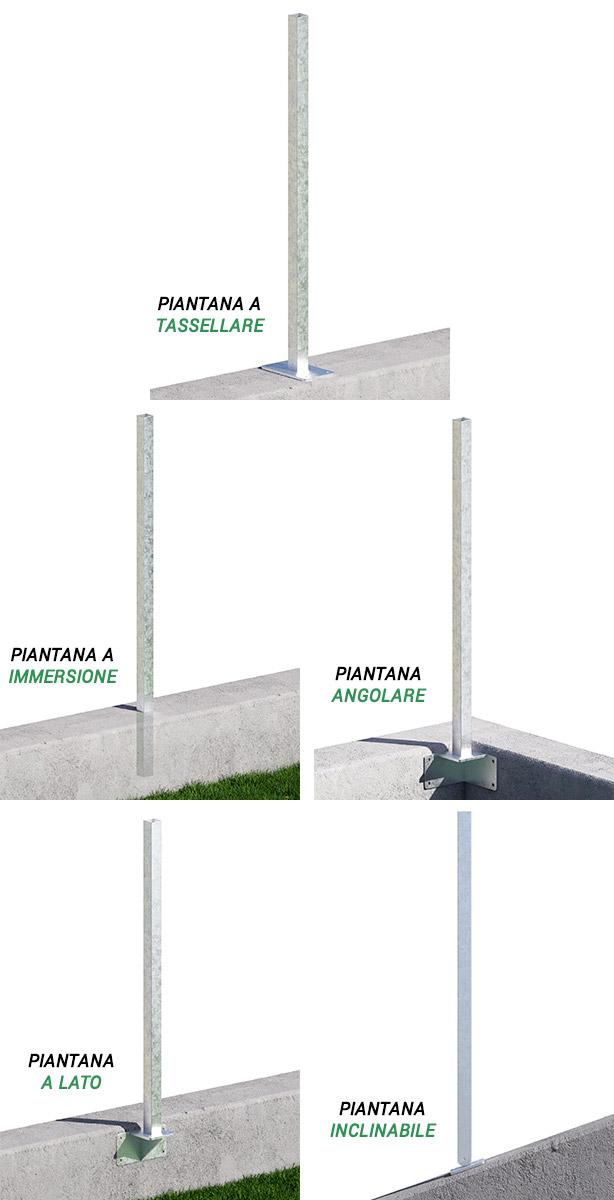 Piantana zincata con piastra a tassellare, già inserite nel modulo