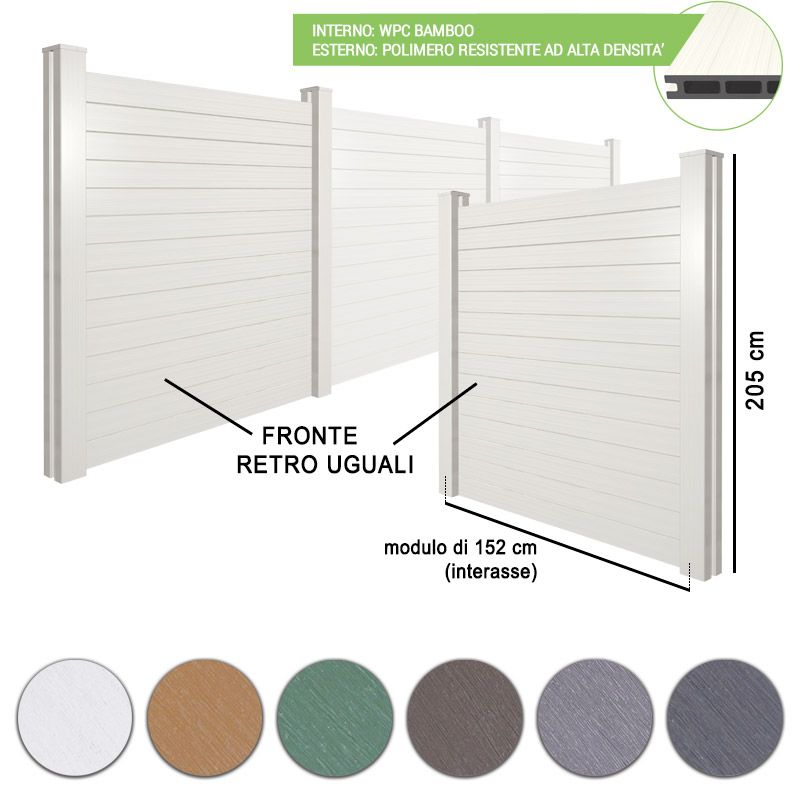 La recinzione in WPC è venduta in kit di installazione completo a modulo (interasse di 152 cm, da metà colonna all'altra)