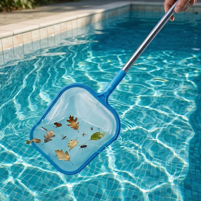 Composto da una rete di 33x30 cm e manico in alluminio lungo 120 cm è lo strumento ideale per raccogliere efficacemente foglie, insetti e piccoli detriti galleggianti prima che si depositino sul fondo della piscina.