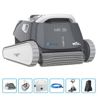 Grazie alle ruote cingolate che offrono un'ottima presa sulle superfici, Mr. 30 rimuoverà lo sporco da fondo, pareti e linea dell'acqua.
