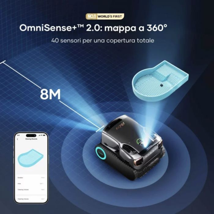 Scopri Aiper Scuba X1 Pro Max, il robot piscina a batteria di nuova generazione che unisce potenza professionale e intelligenza artificiale per una pulizia senza eguali. Grazie alla tecnologia OmniSense+™ 2.0 Quad-Core con 40 sensori intelligenti, questo innovativo robot senza cavo effettua una scansione 3D e mappa l'intera vasca, adattandosi a qualsiasi forma e garantendo una copertura impeccabile, centimetro dopo centimetro.