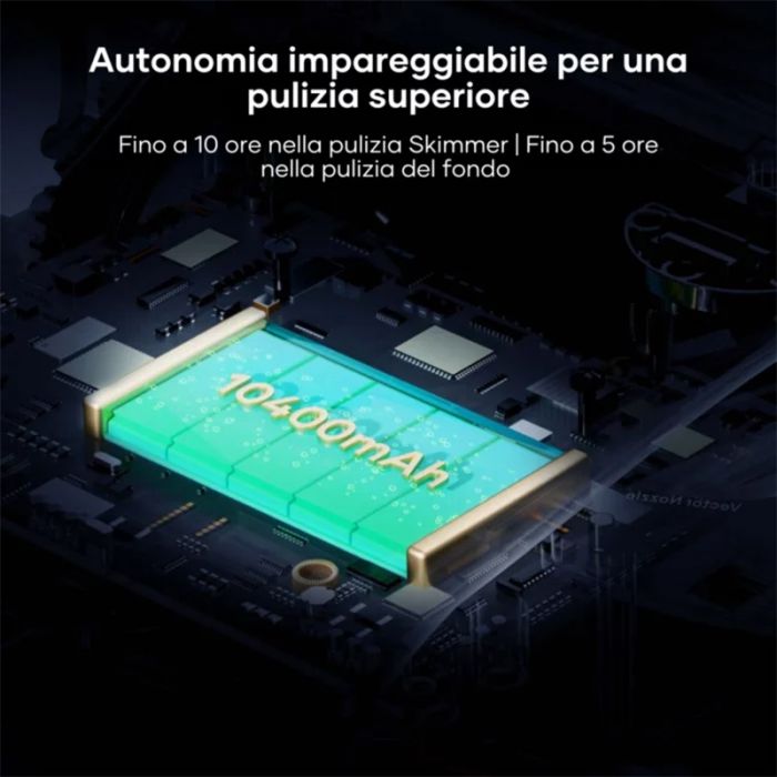 Autonomia: fino a 12 ore (600 minuti) per la pulizia della superficie / fino a 5 ore (300 minuti) per la pulizia di fondo e pareti