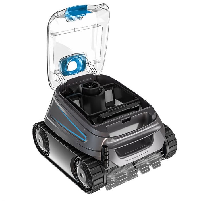 Pulitore automatico dotato di motore "Vortex" con aspirazione ciclonica che mantiene le particelle di sporco in sospensione riducendo il rischio di ostruzione del filtro